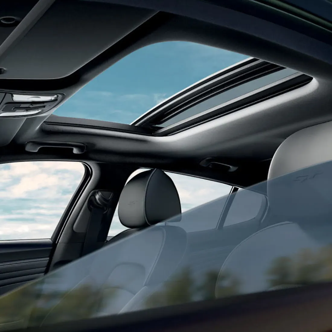 - Декоративная отделка: Центральная консоль с отделкой алюминием, Дизайнерская прострочка дверей